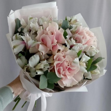 Букет из 3 французских роз и Альстромерии